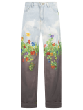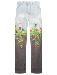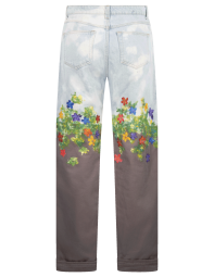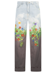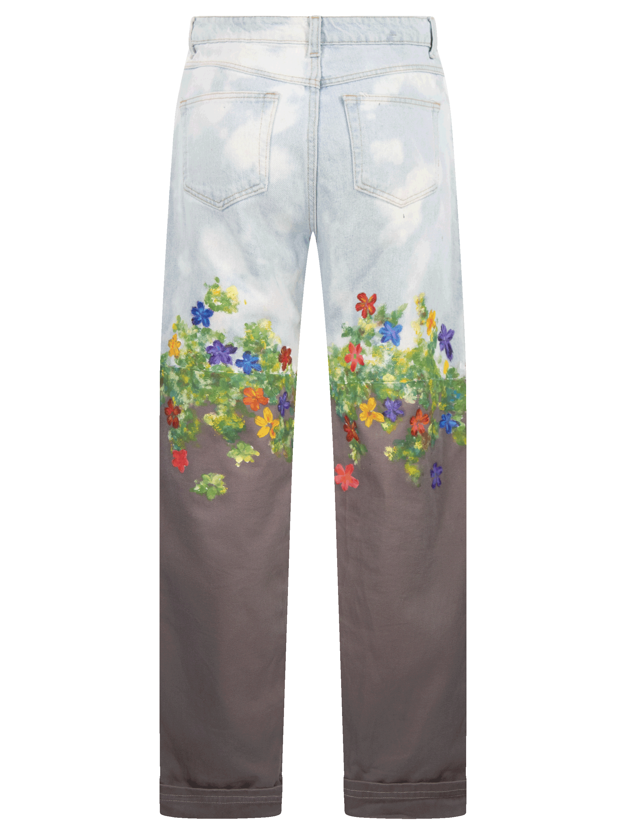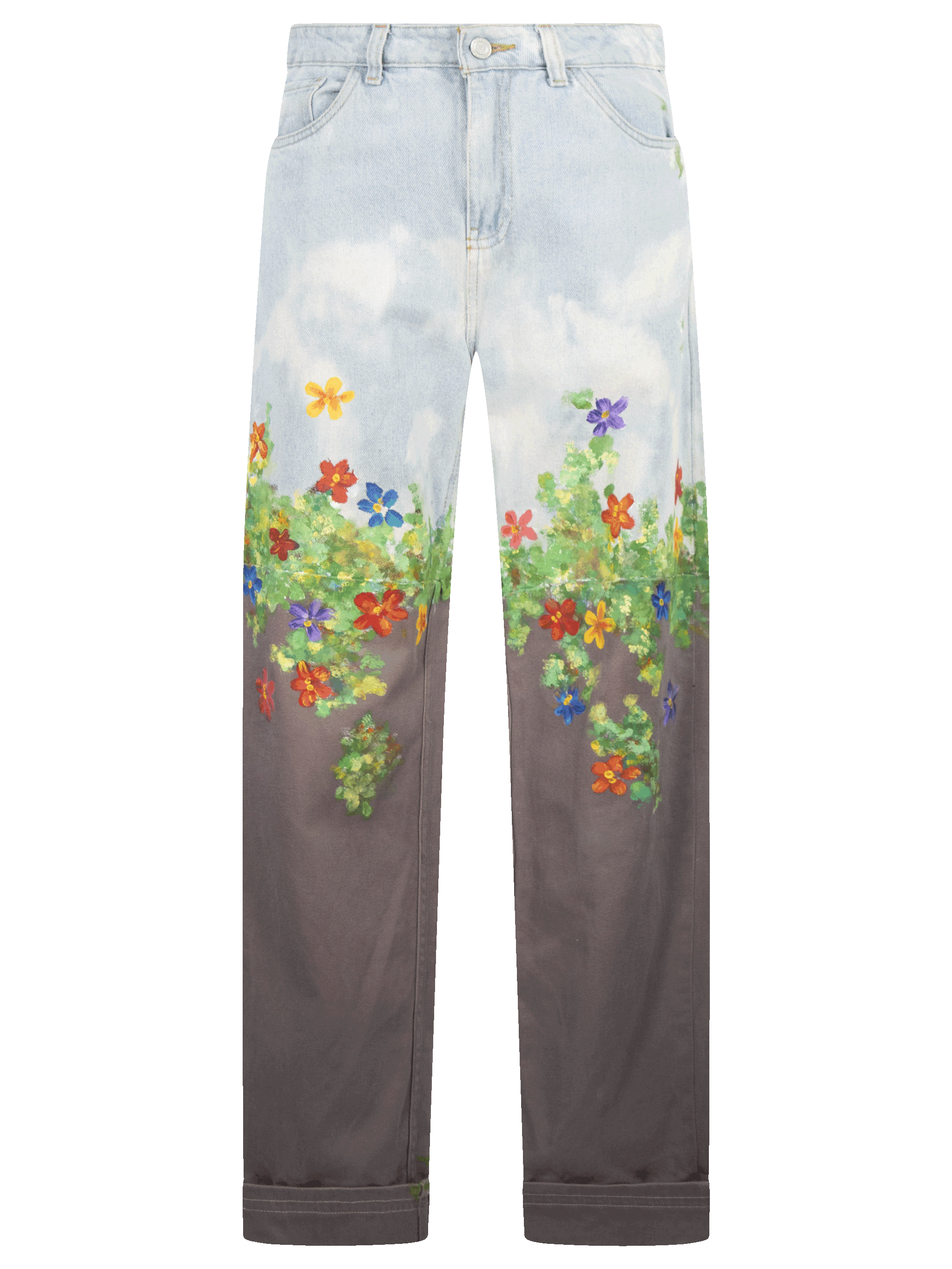Jeans de mezclilla intervenidos con flores pintadas bajos