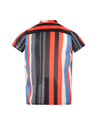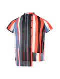 Camisa rayada con botones, manga corta. Frontales y largos asimétricos.