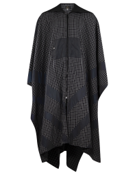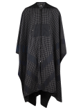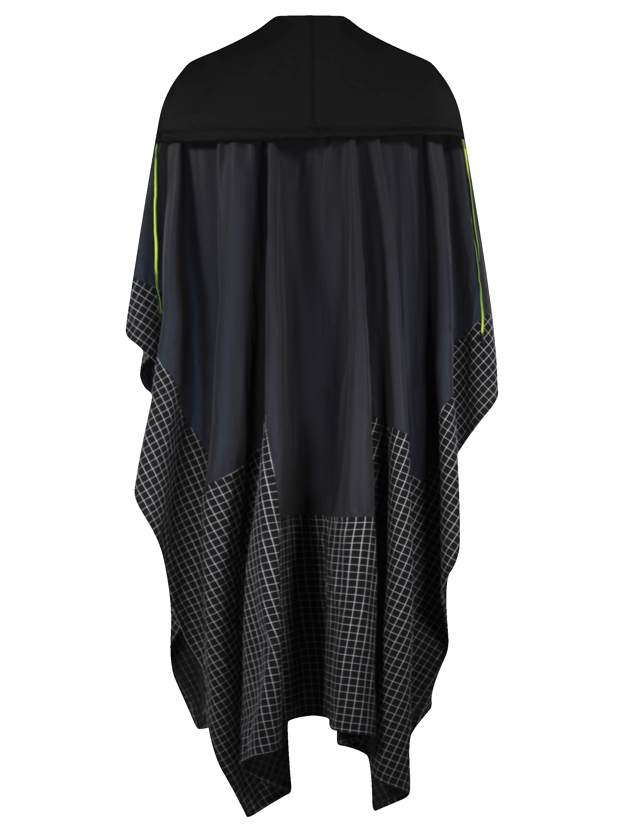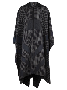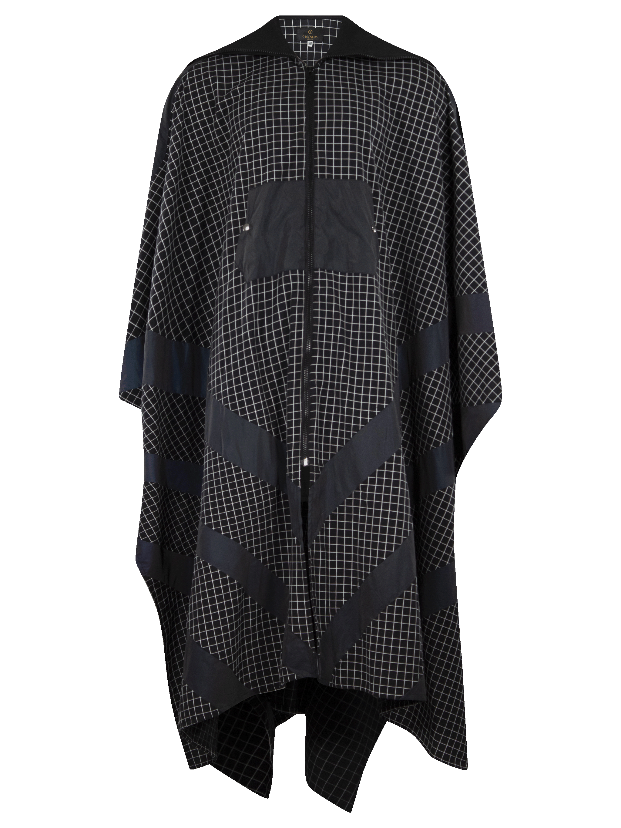 Capa larga, impermeable, con cierre en delantero, jaretas para ajustar capucha y bolsas delanteras.