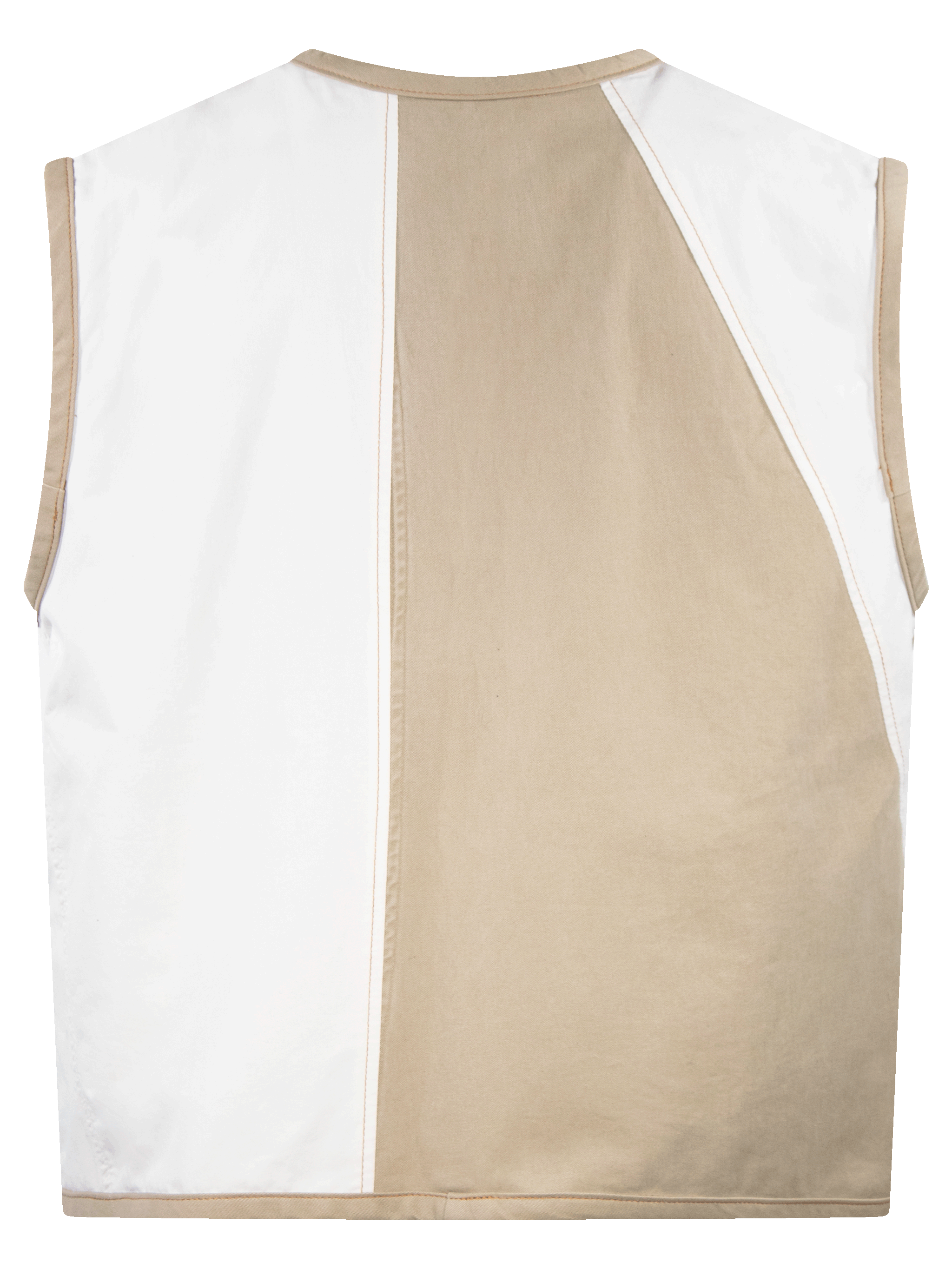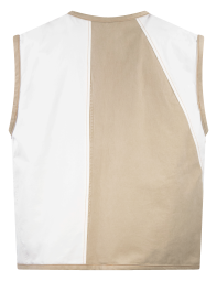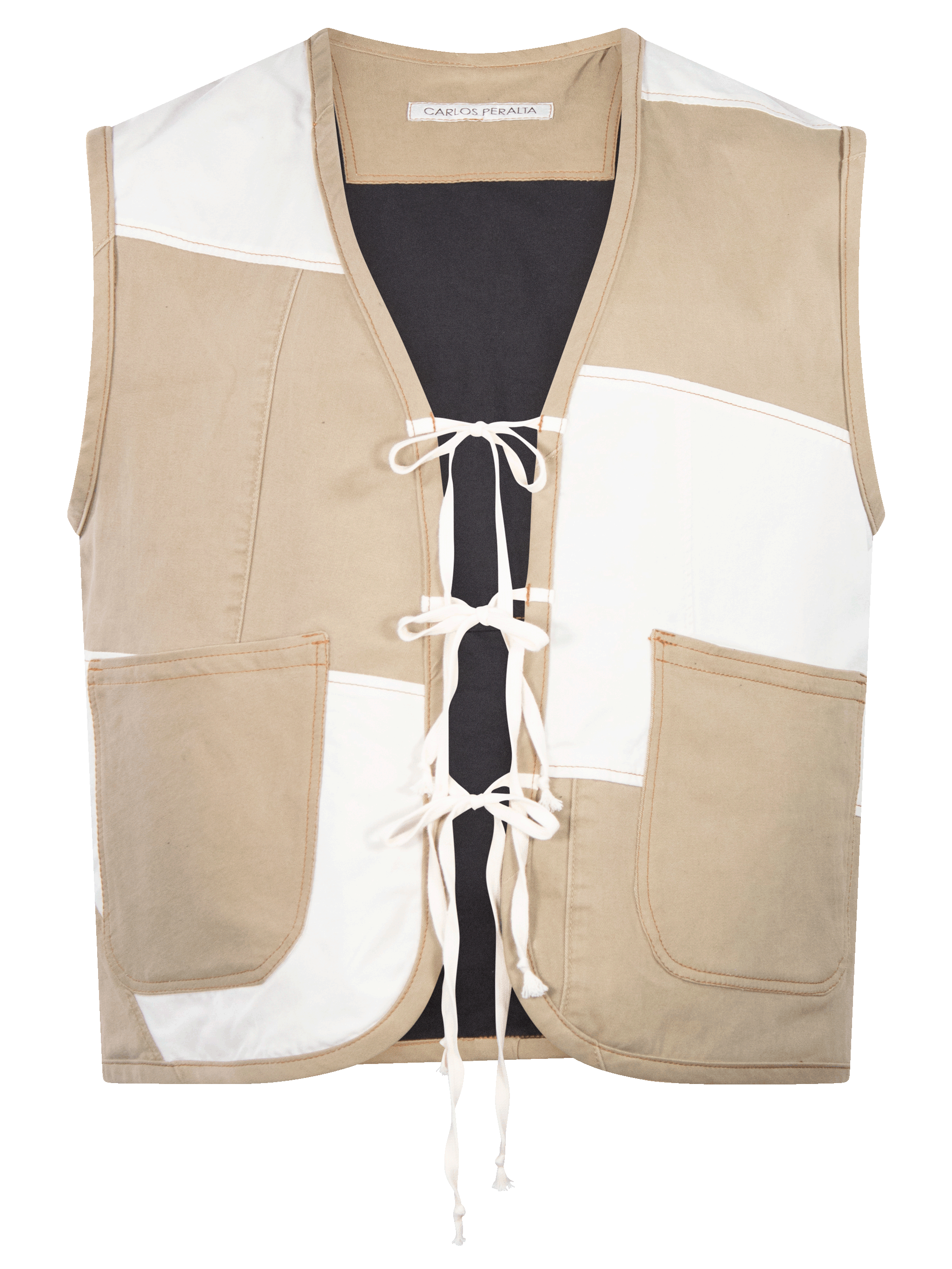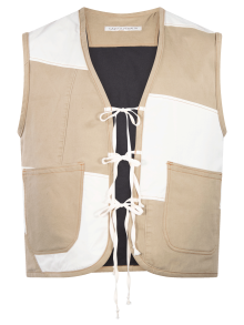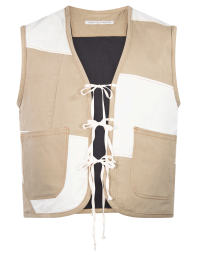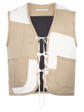 Chaleco patchwork, con cintas delanteras para cerrar.