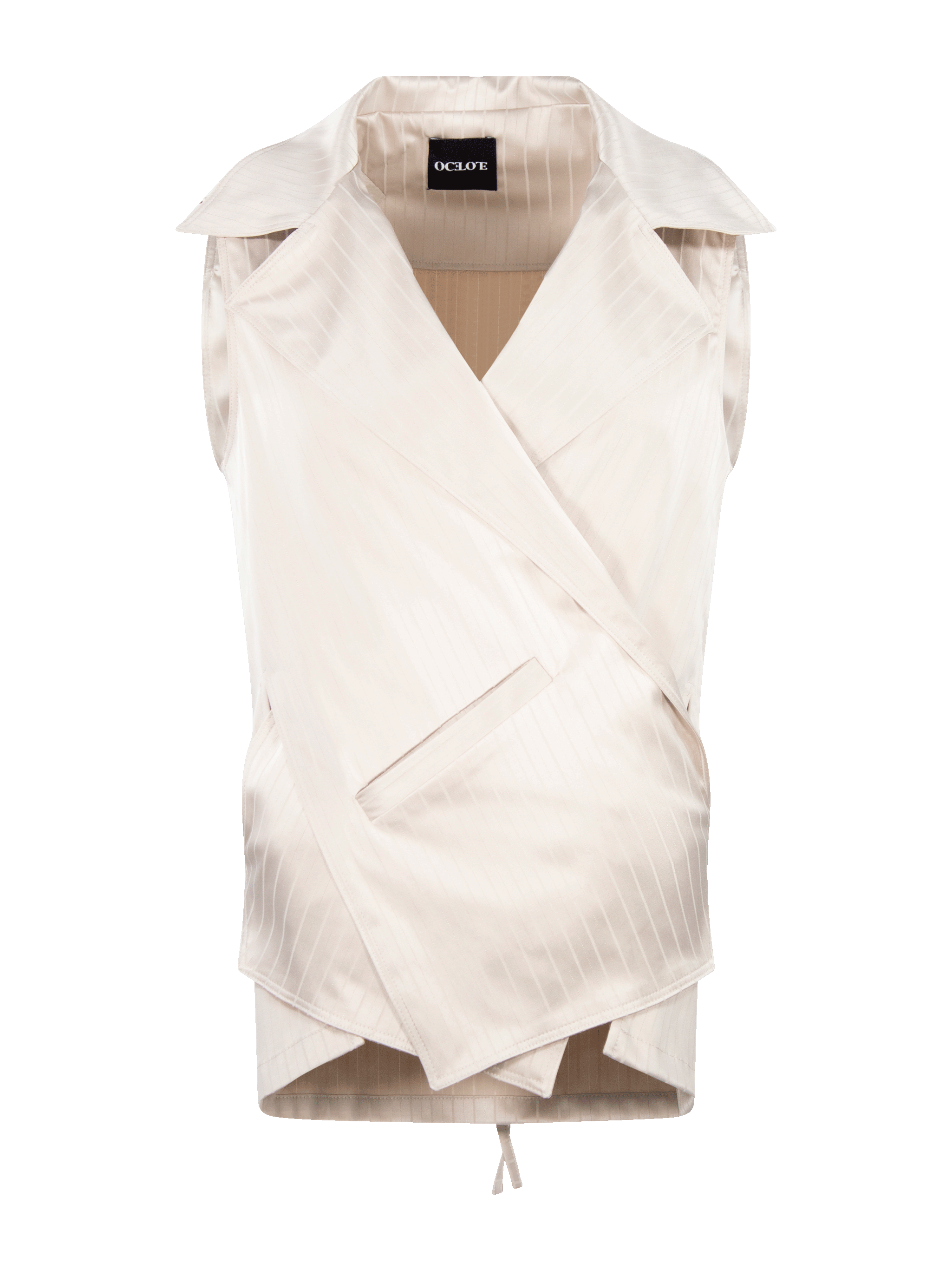 Chaleco con cuello y solapa, con cintas para ajustar.