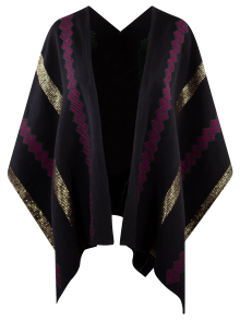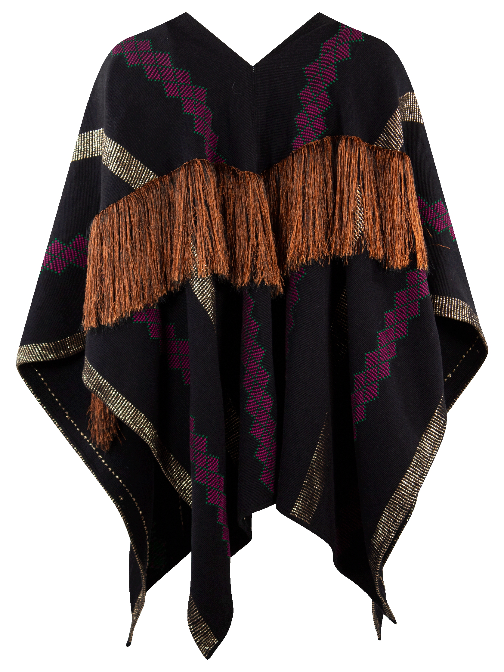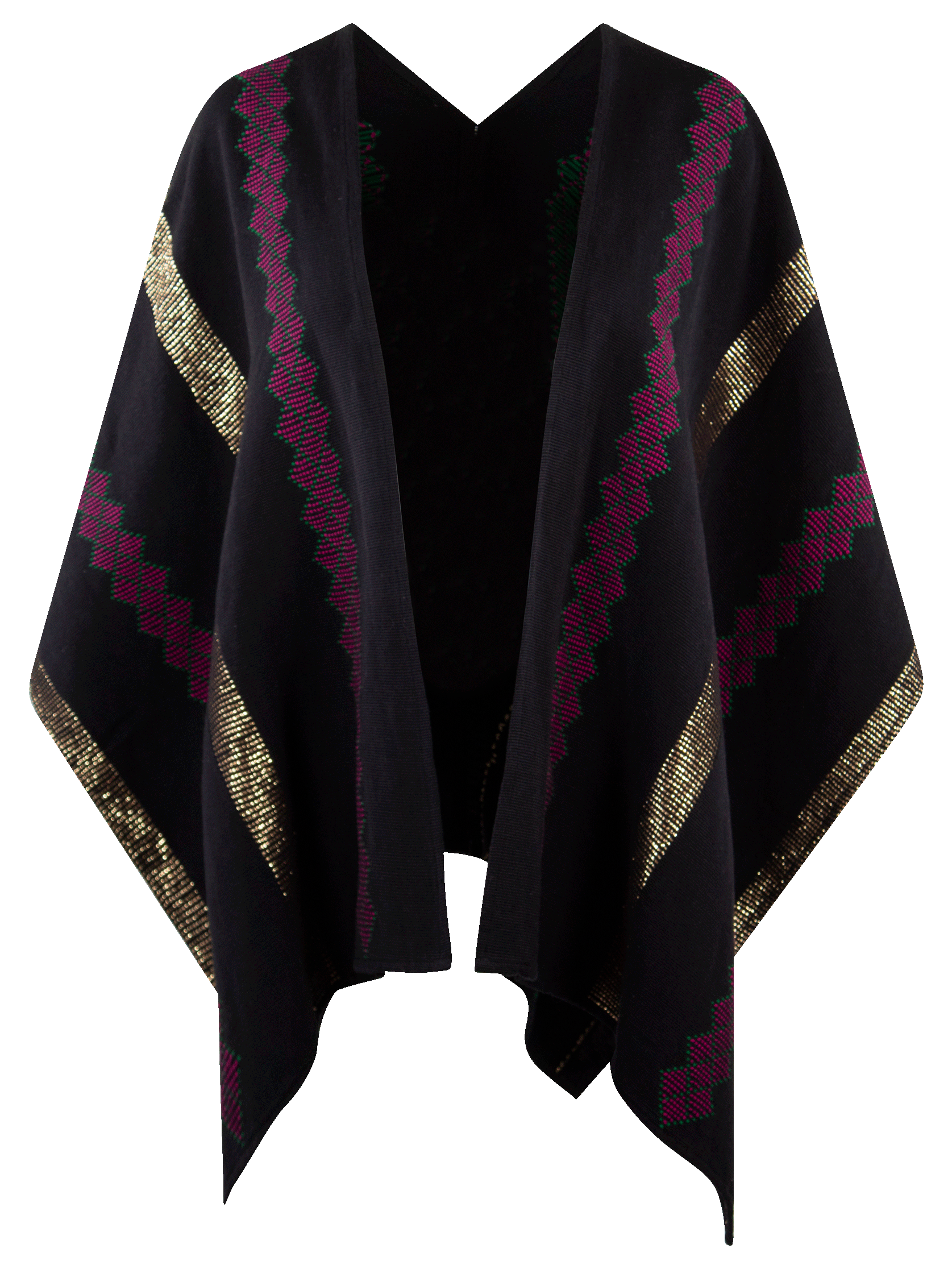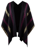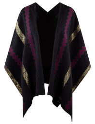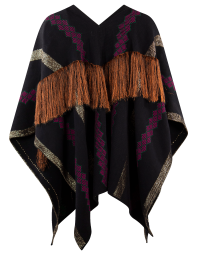 Telar de cintura poncho con hilo omega, rayon y florentino metalizado.