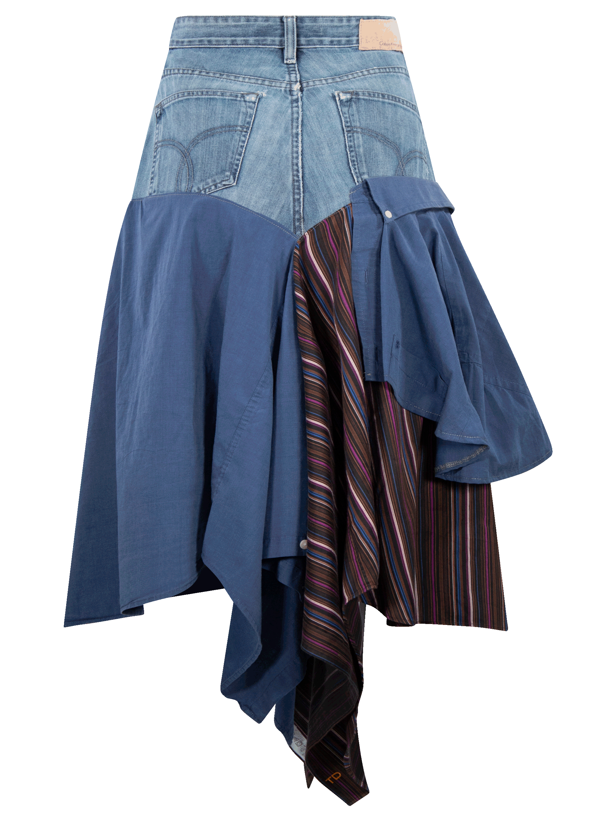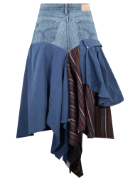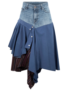 Falda con parte superior de mezclilla, parte baja de camisas.
