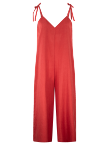 Jumpsuit de tirantes ajustables, escote en V, cierre en trasero.