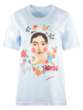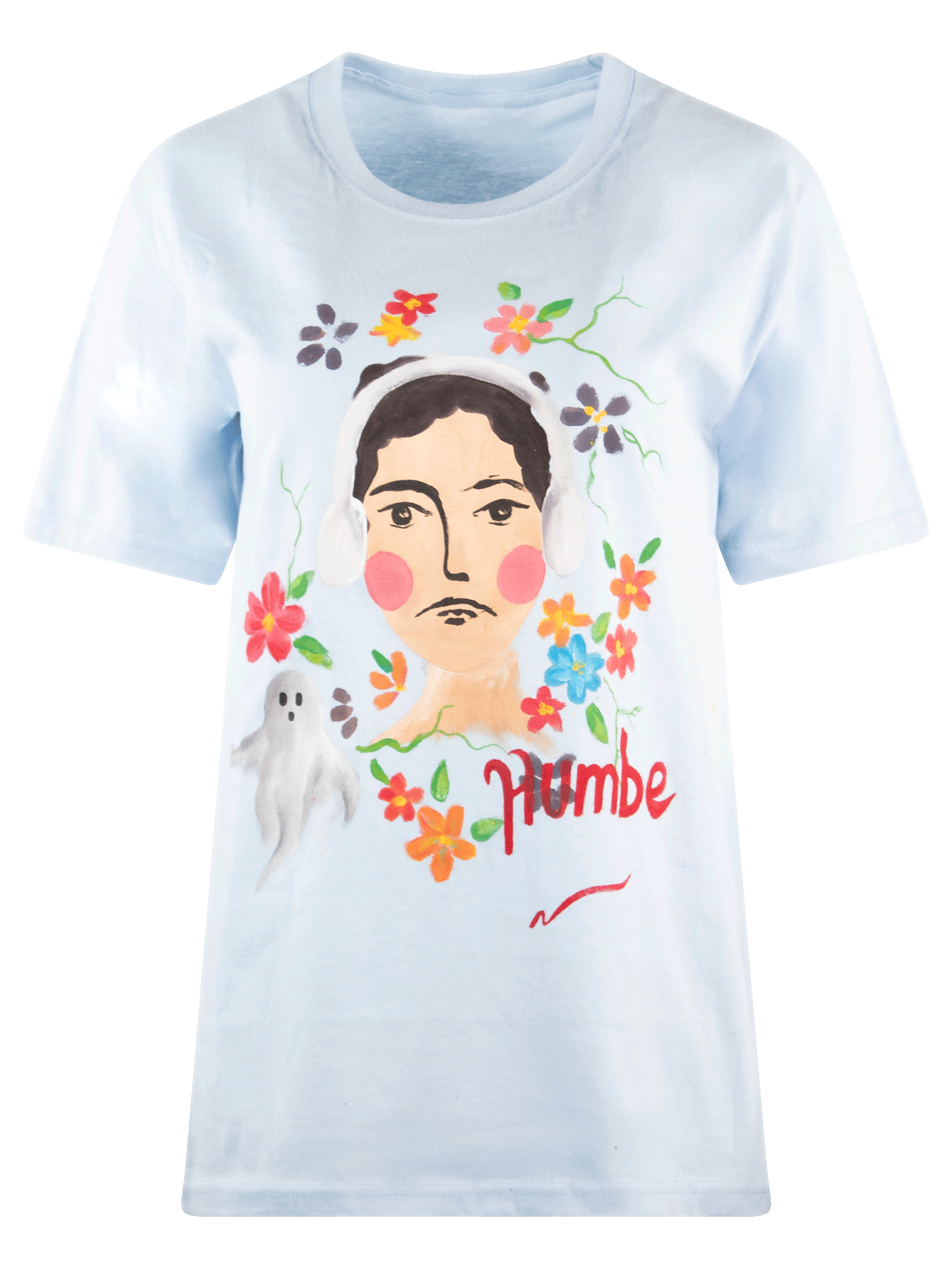 Playera corte regular, intervenida con gráficos pintados a mano.