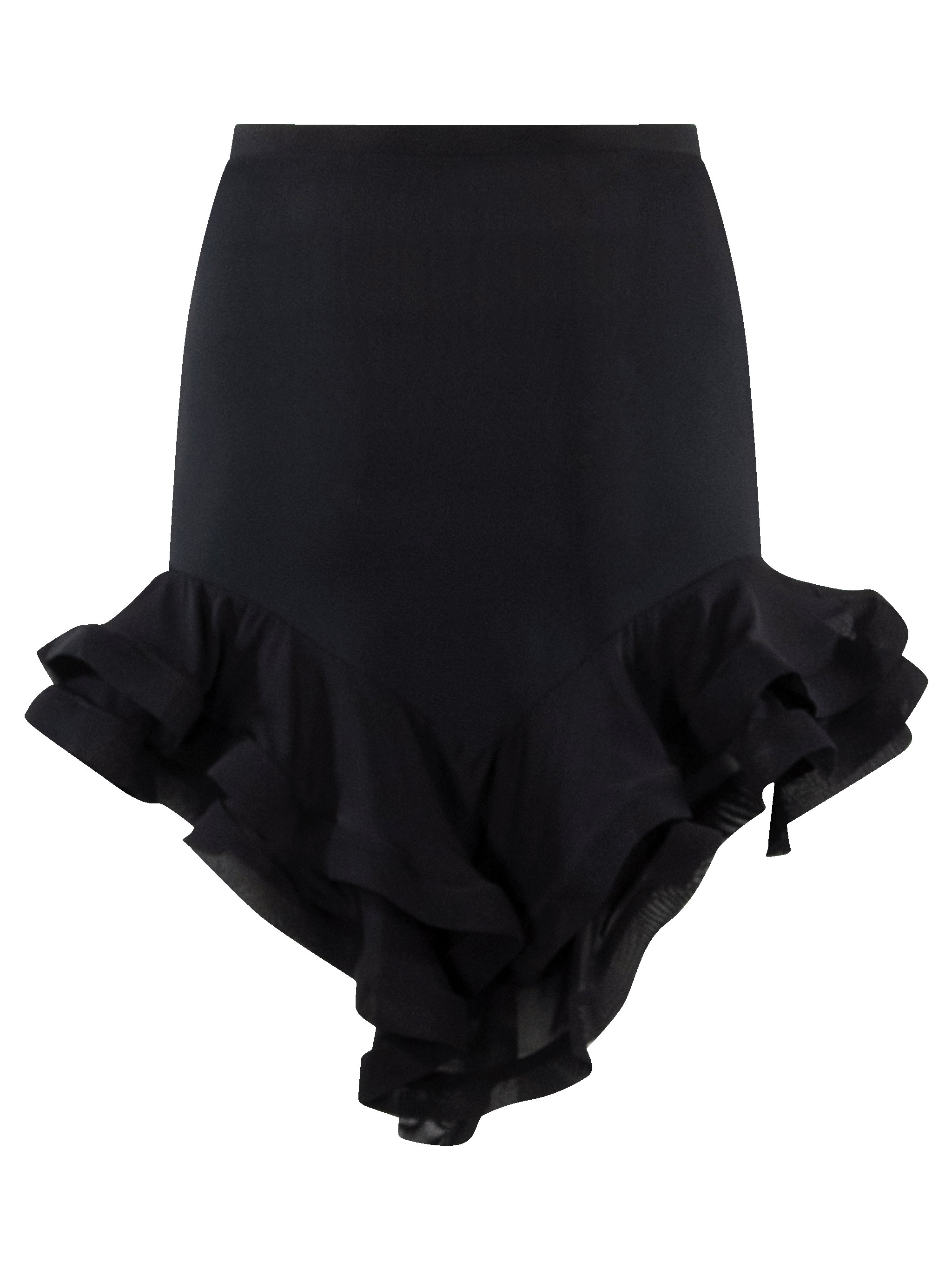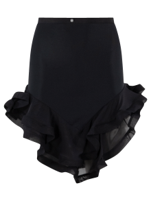 Mini falda señida con volantes en silueta V.