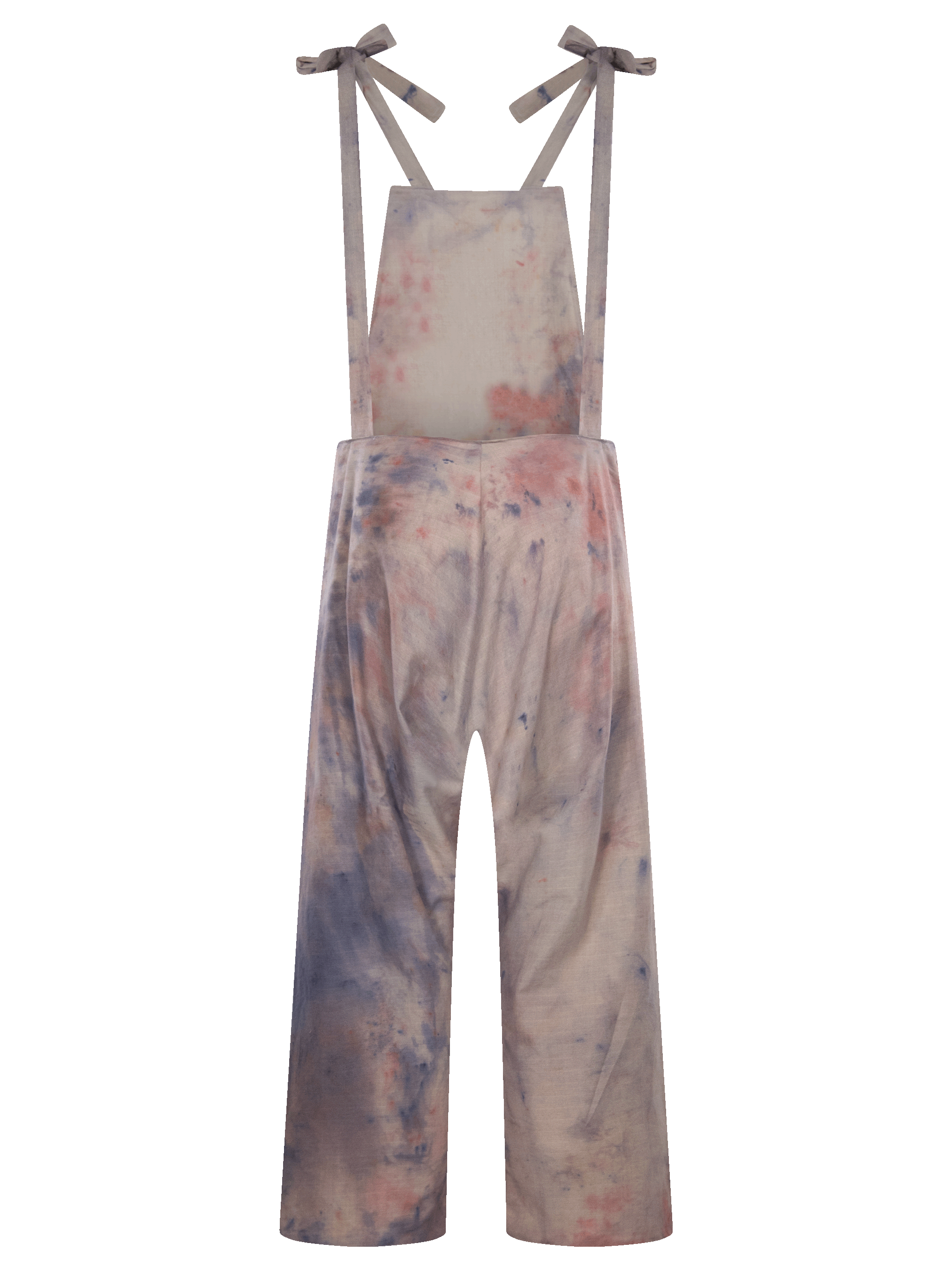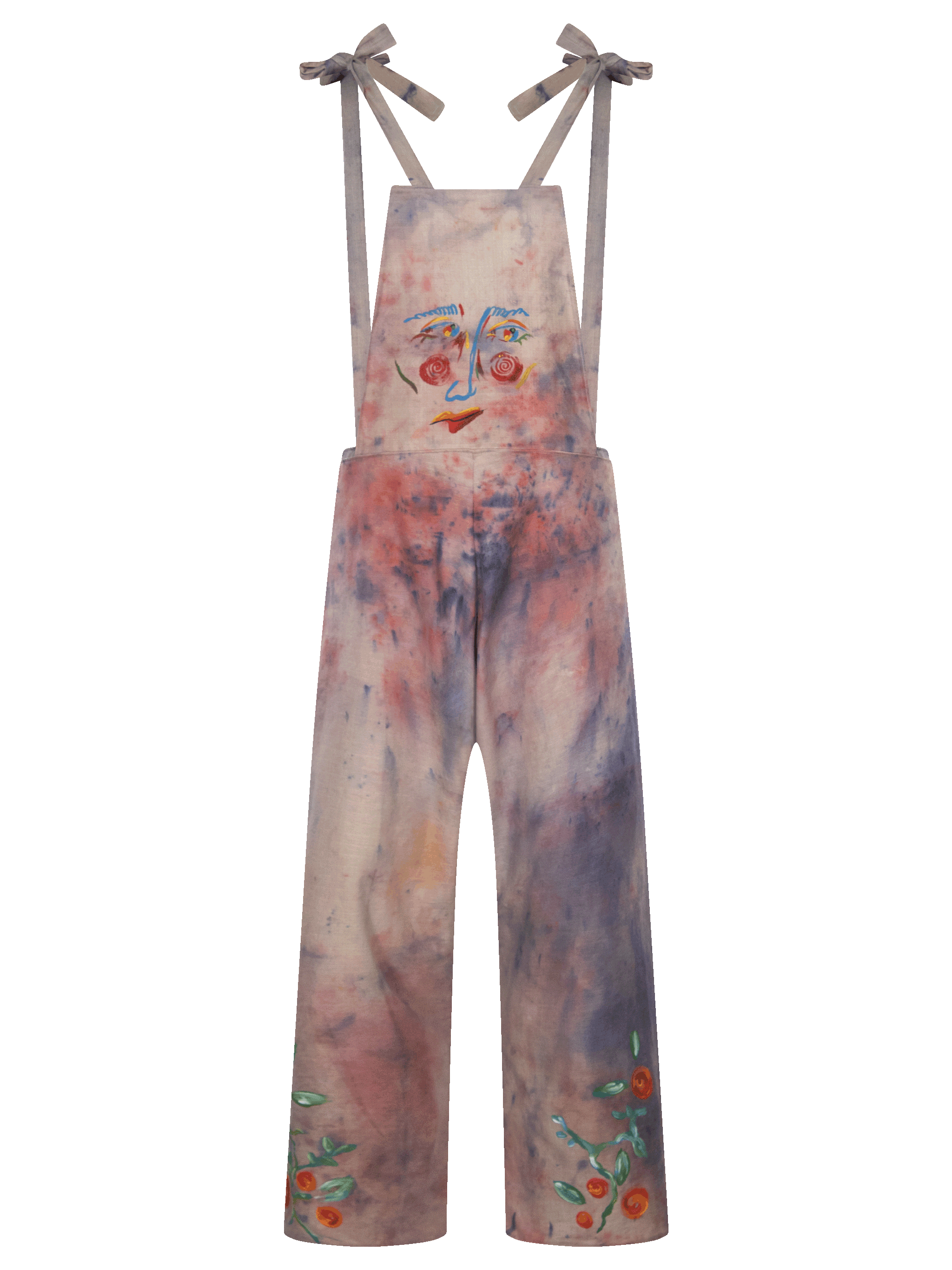 Overol, teñido estilo Tie Dye. Con ilustración pintada mano en el pecho.
