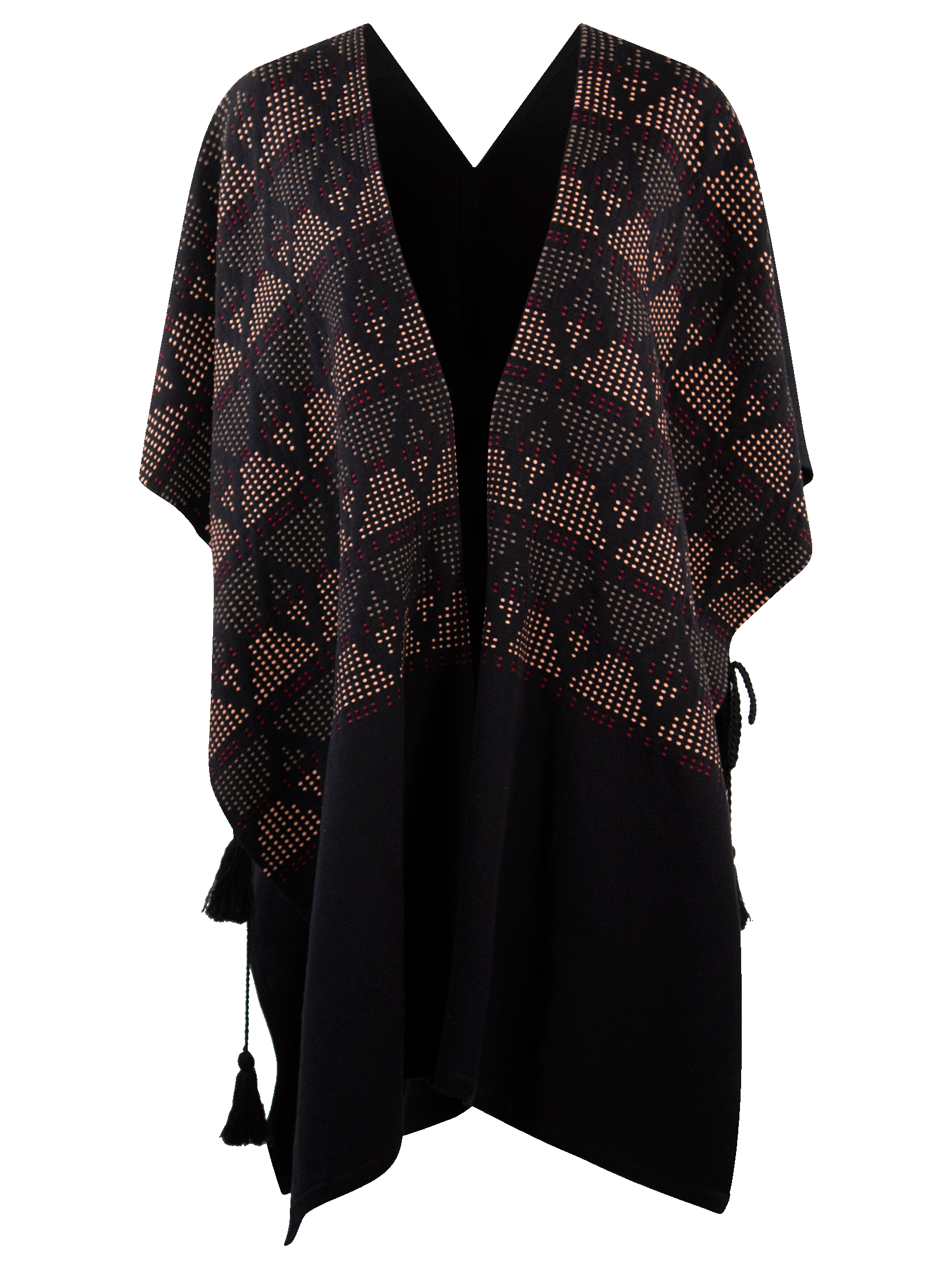 Folklora traza una continuidad entre herencia textil y forma contemporánea. Las siluetas caen con amplitud medida: capas abiertas, túnicas de líneas limpias, vestidos largos que acompañan el movimiento con suavidad. El patrón se convierte en ritmo visual, zigza... + Info