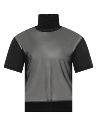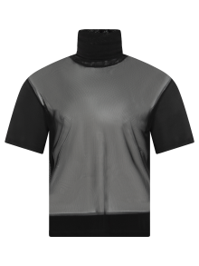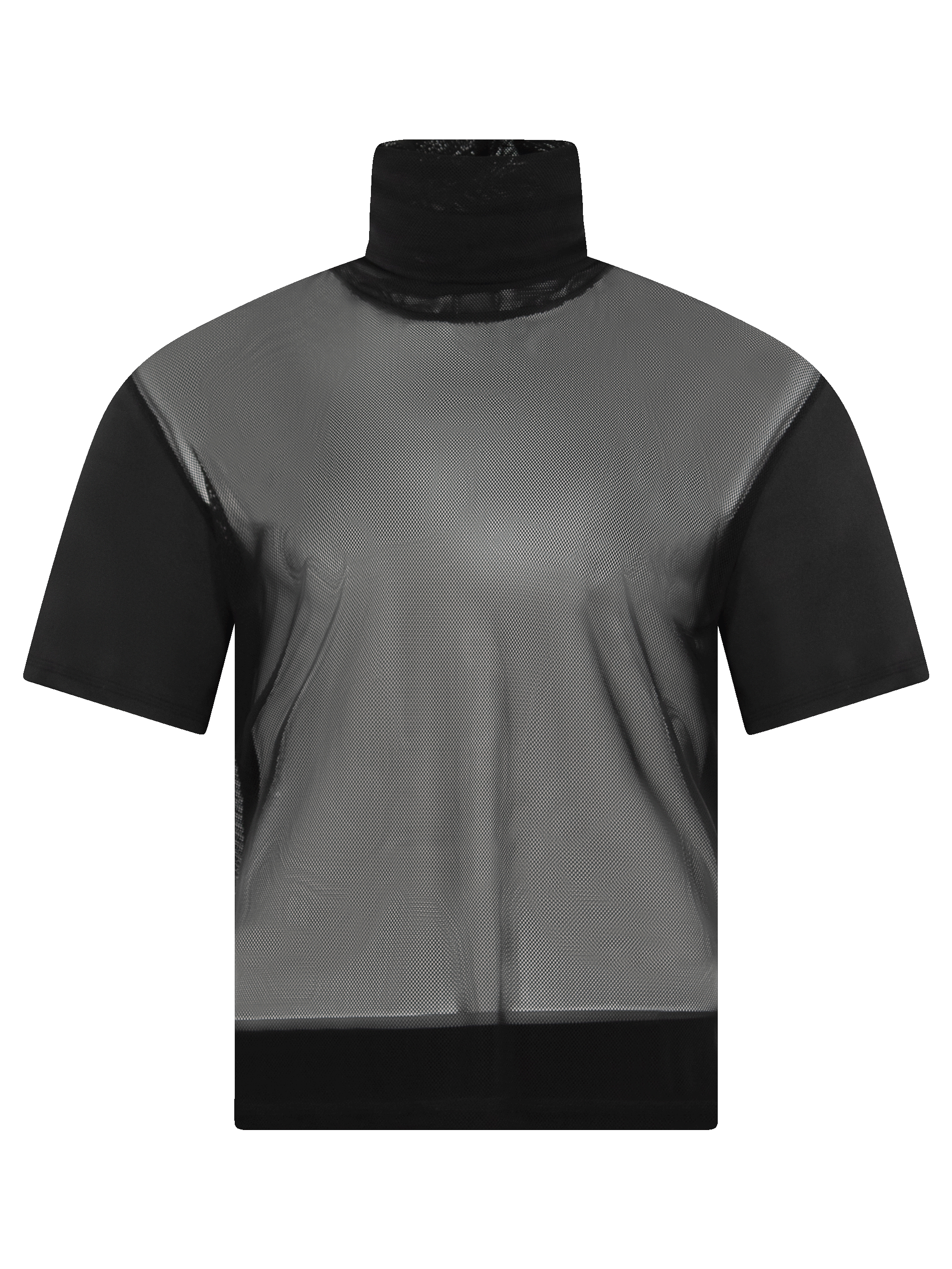 Playera de manga corta, con cuello alto, delantero transparente.