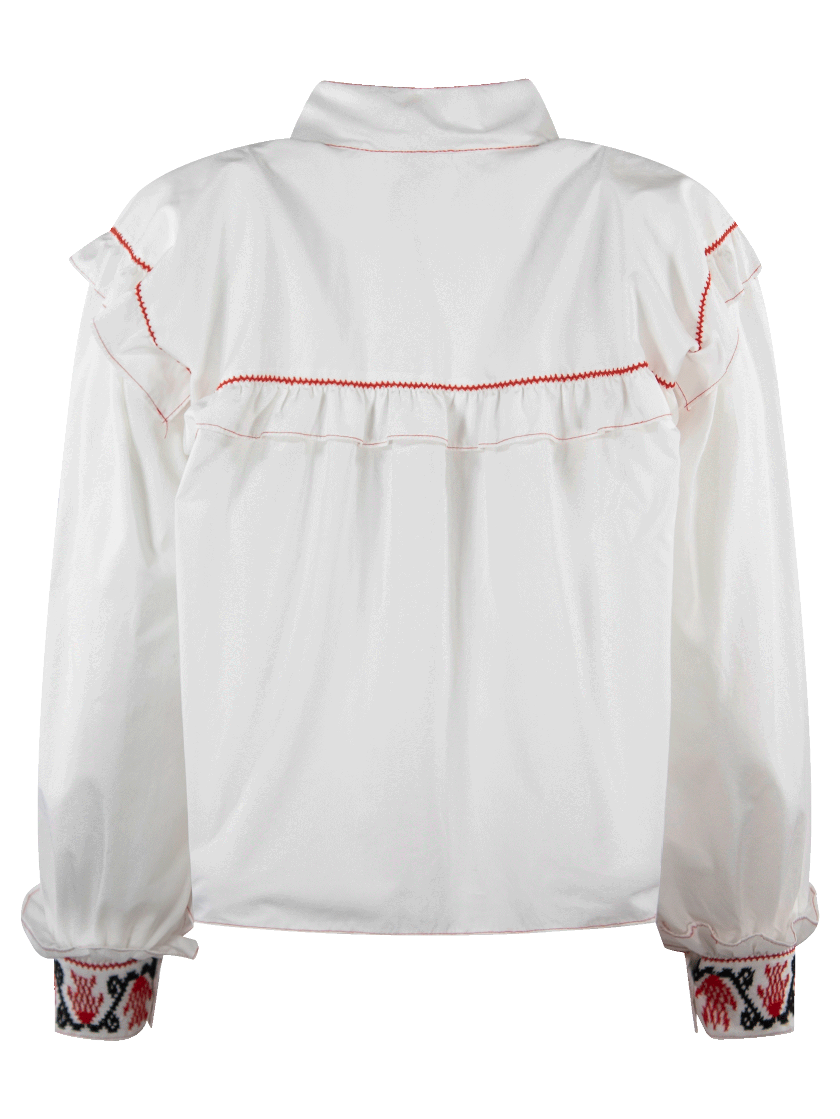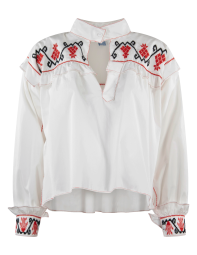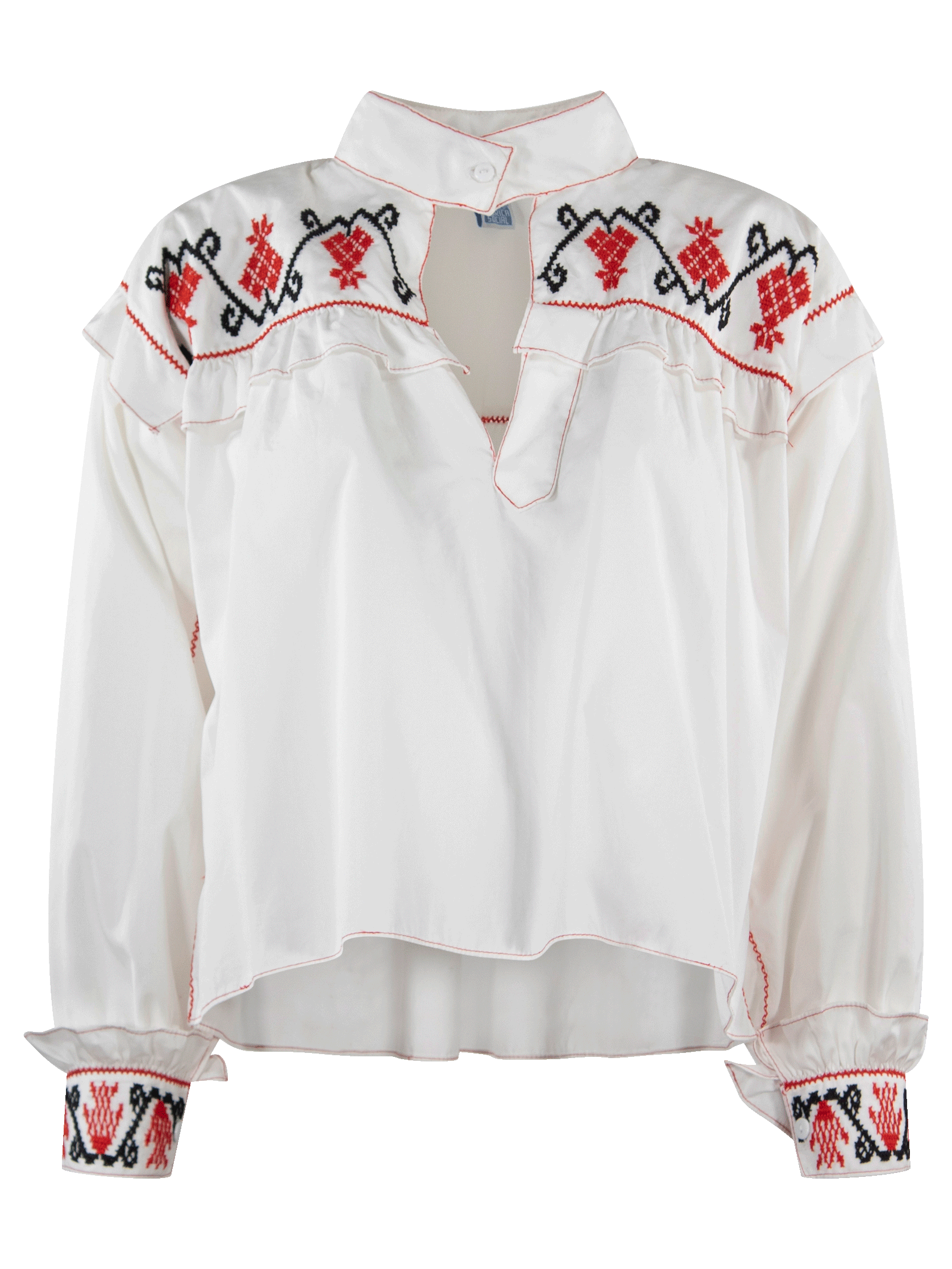 Blusa tradicional de Santa Catarina Acaxochitlán, Hidalgo. Bordada en punto de cruz y armada completamente a mano por artesanas nahuas expertas.