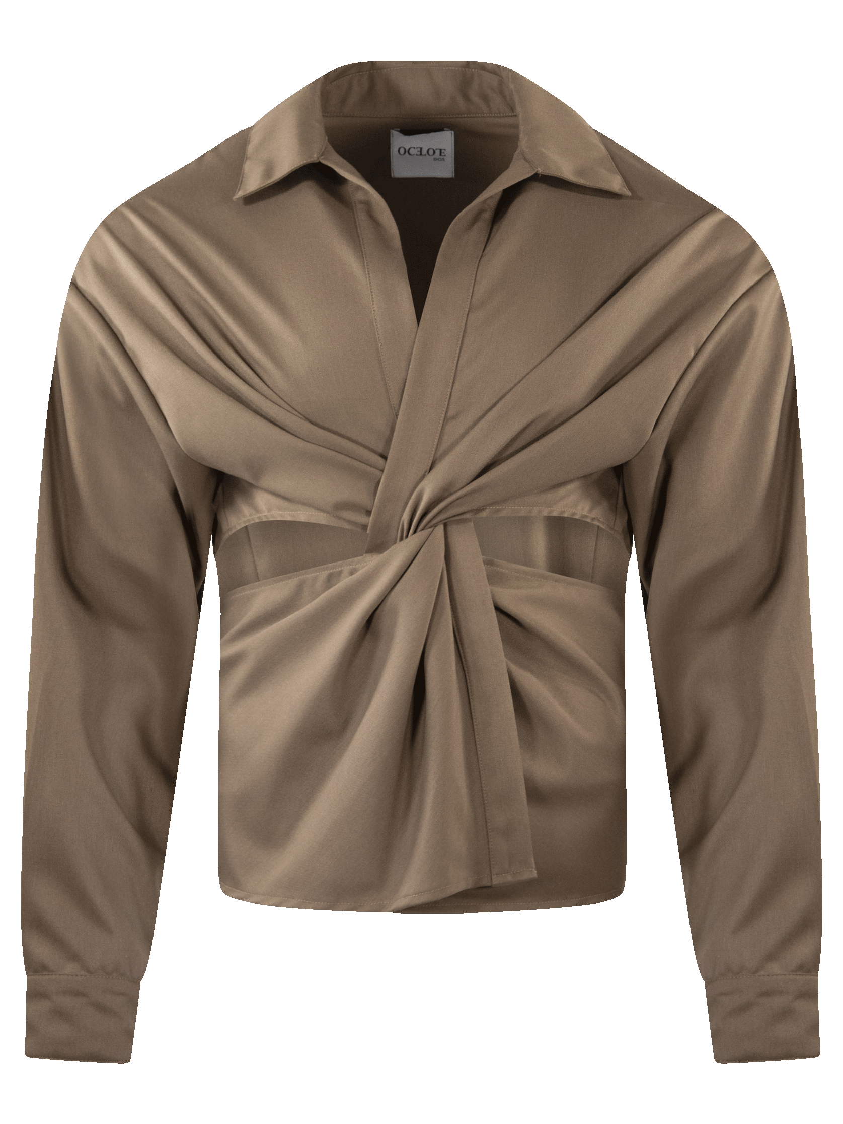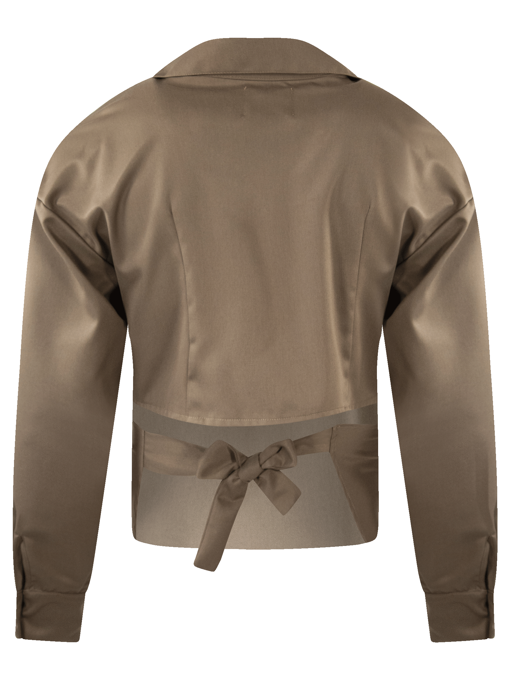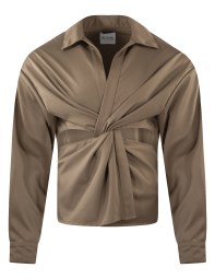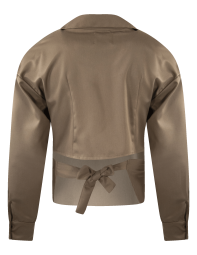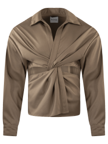 Camisa manga larga cruzada con jaretas para amarre y media espalda.
