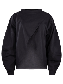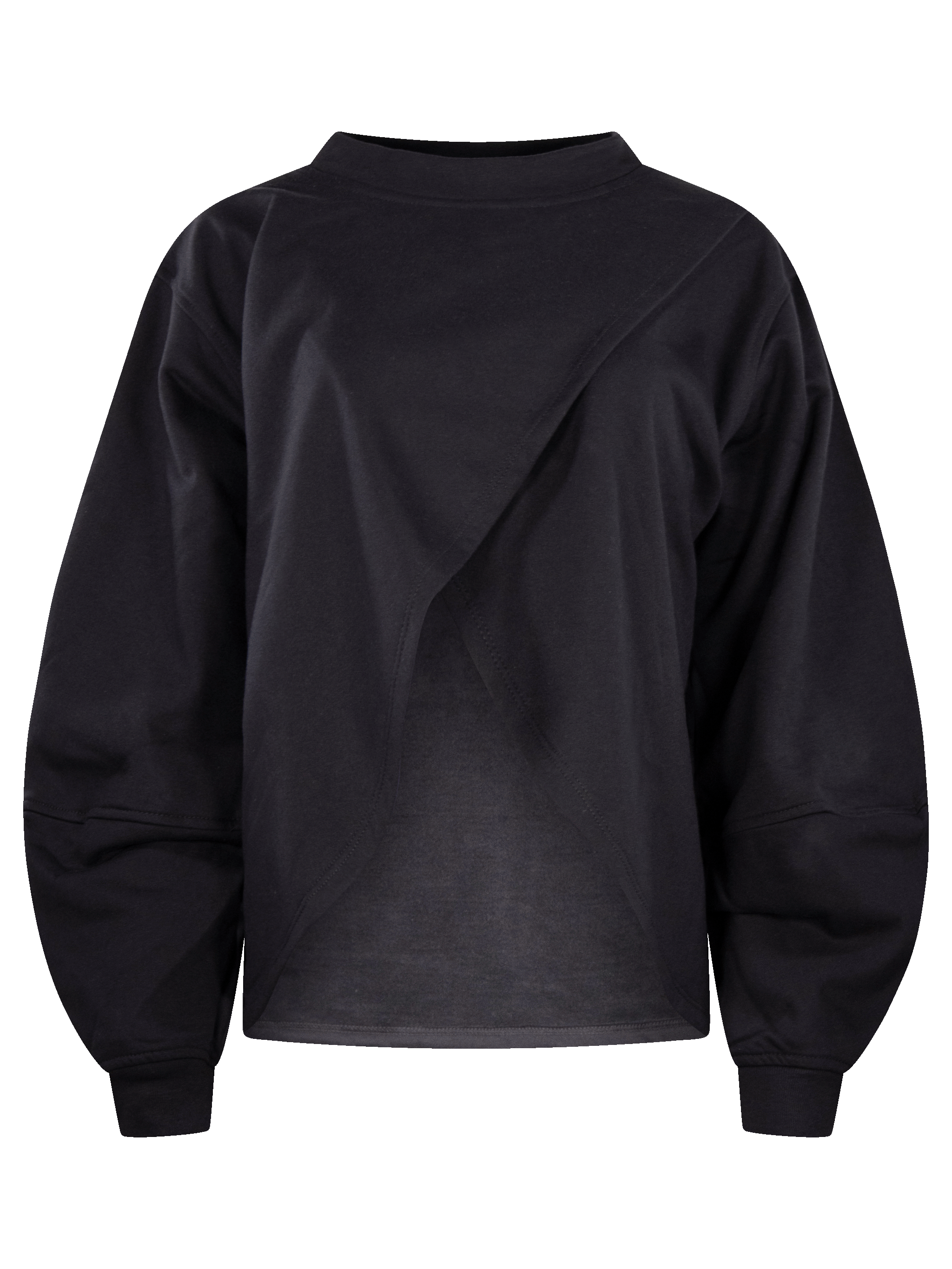 Sudadera de cuello redondo, cruzada al frente con abertura.