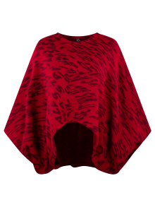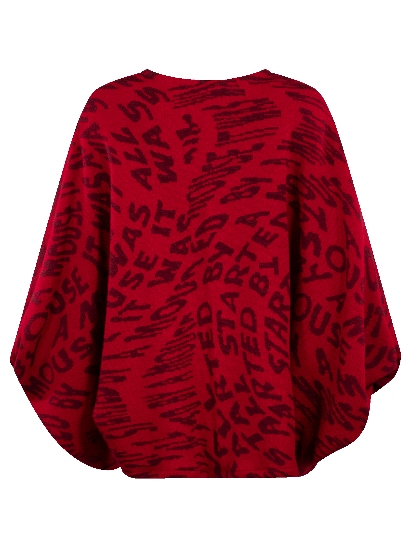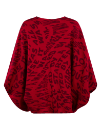 Sweater con letras, de mangas bombachas, el delantero es más corto que el trasero.