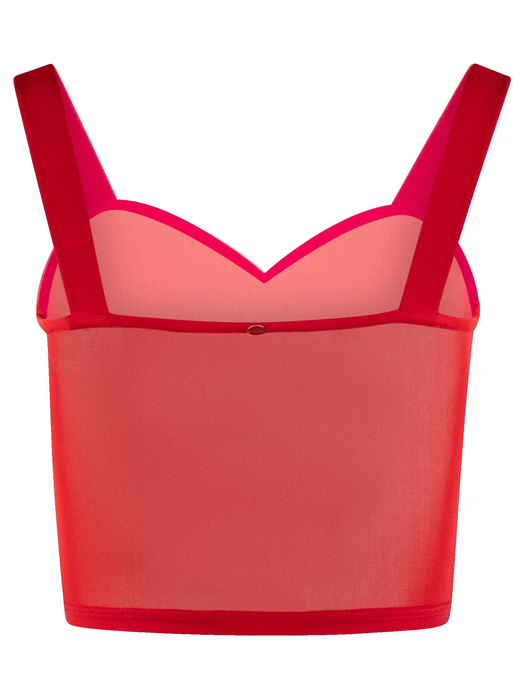 Top de mesh, con tirantes, copas, y botones decorativos al centro delantero.
