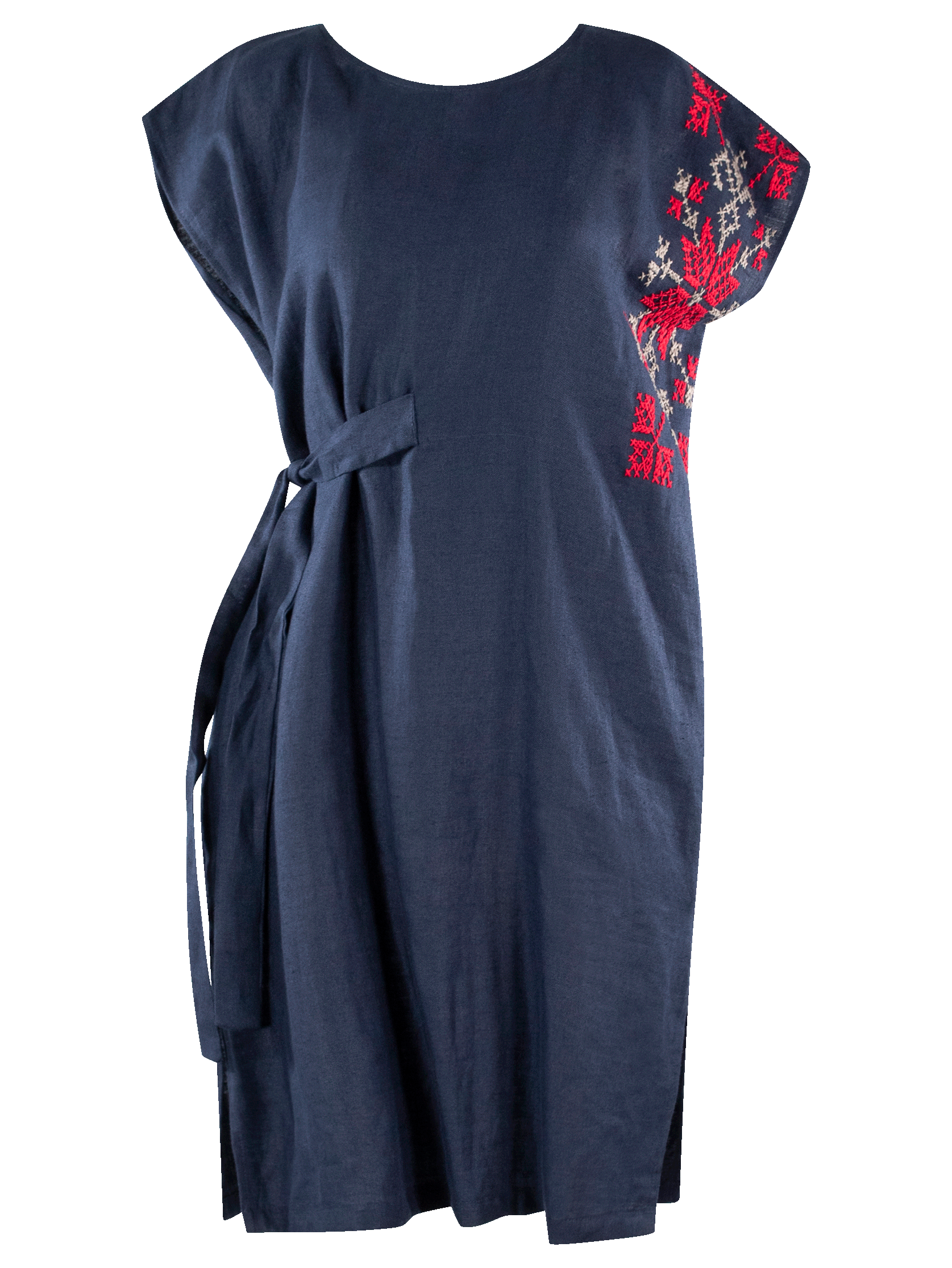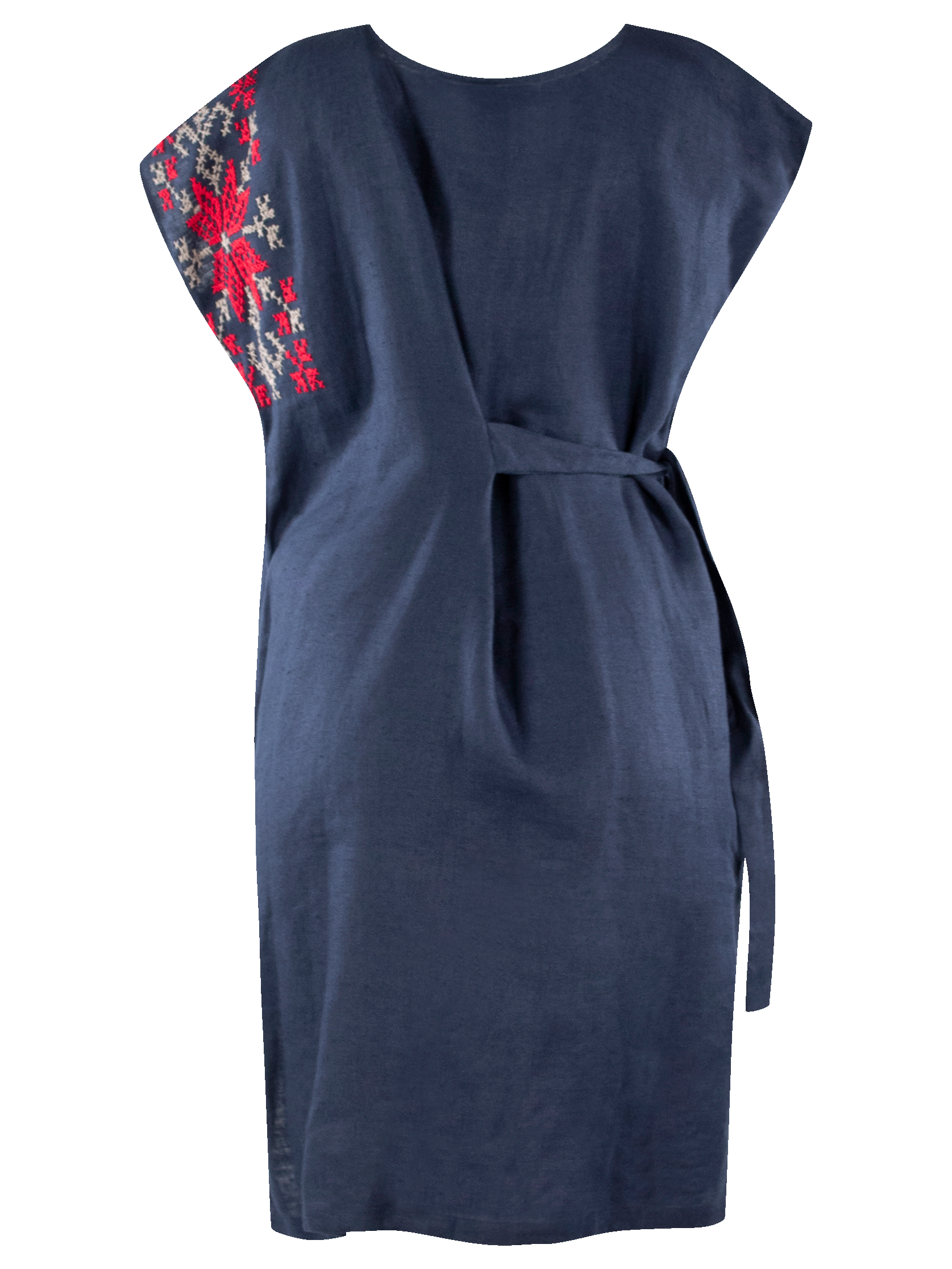 Pieza confeccionada en 100% lino. Bordada a mano en punto de cruz por artesanas nahuas de SantaCatarina, Hidalgo.