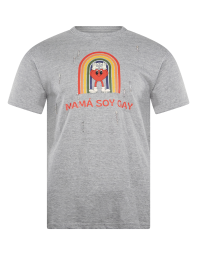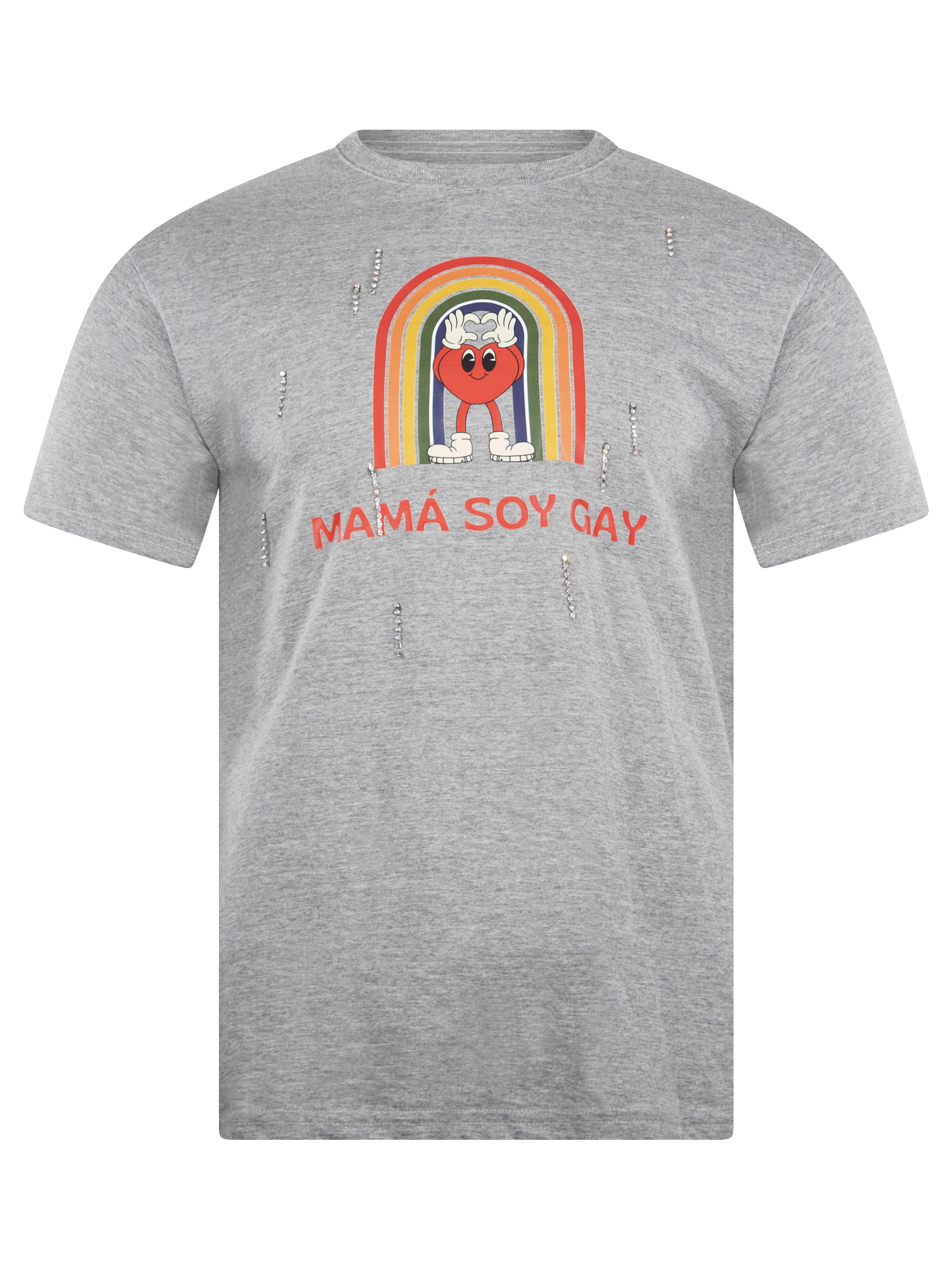 Playera de corte regular con ilustración impresa "mama soy gay". Con apliques de cristales.