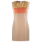 Blusa cuello alto naranja con beige