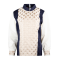 Chaleco blanco con rayas azules y flores azul marino